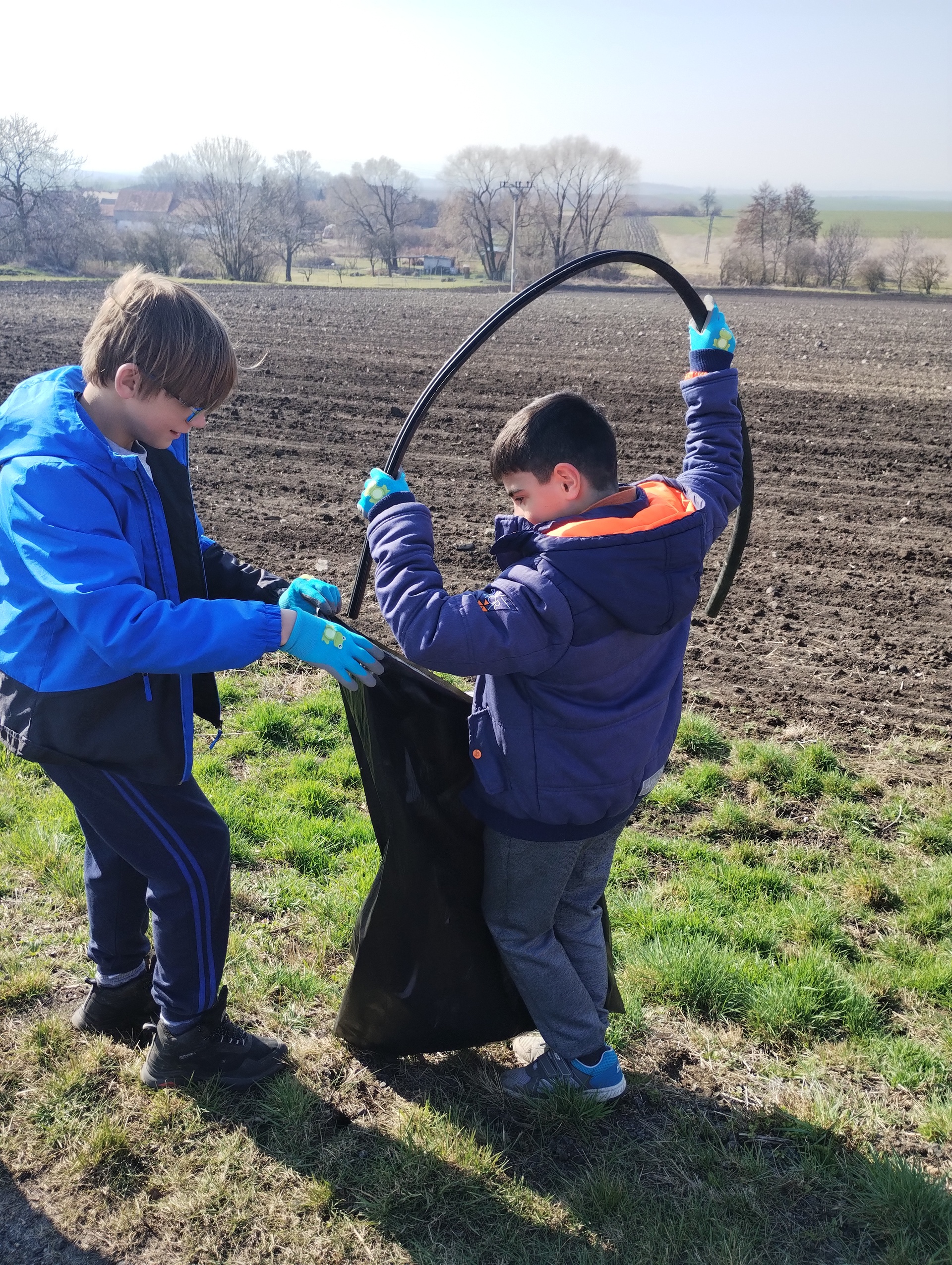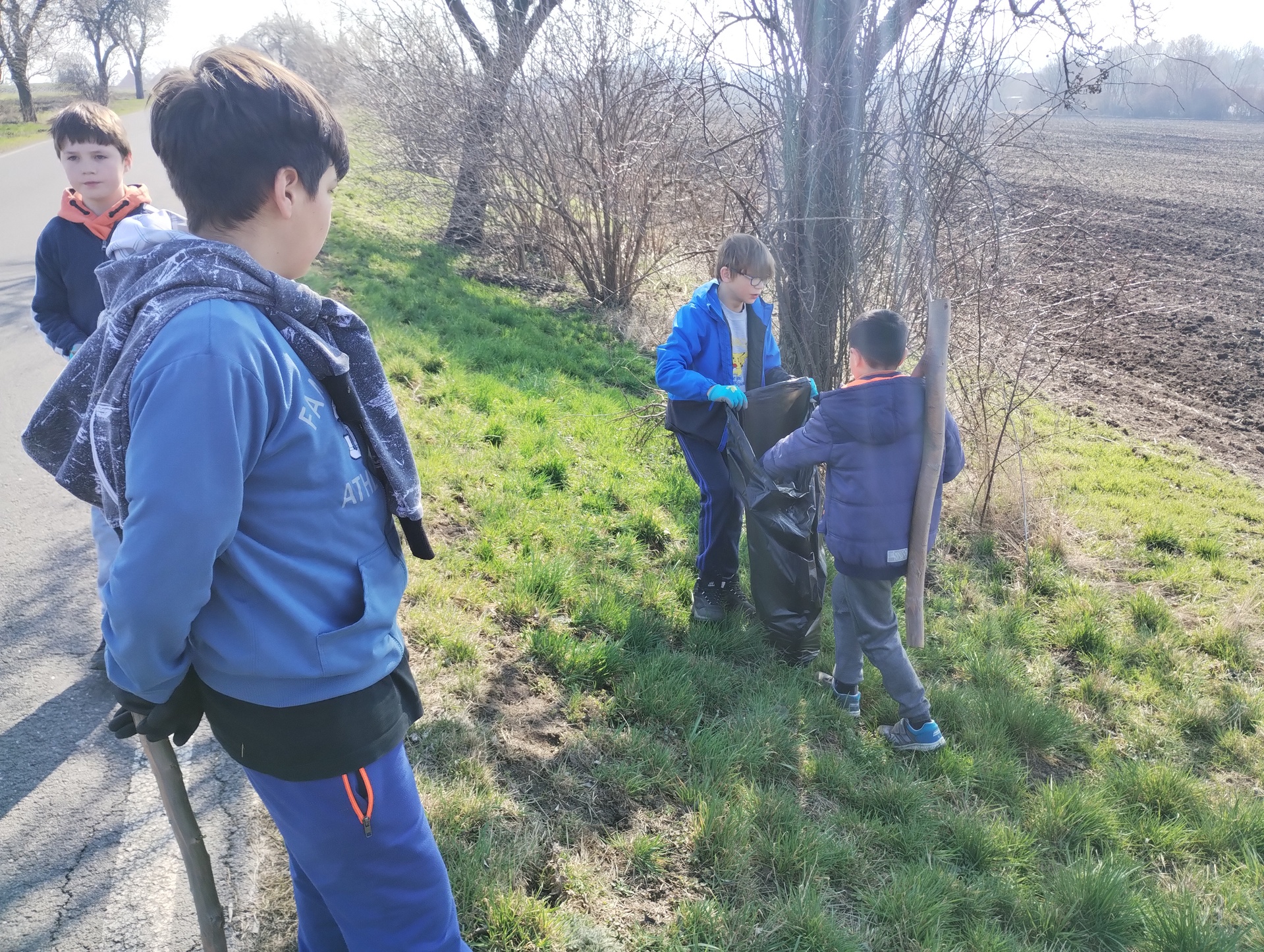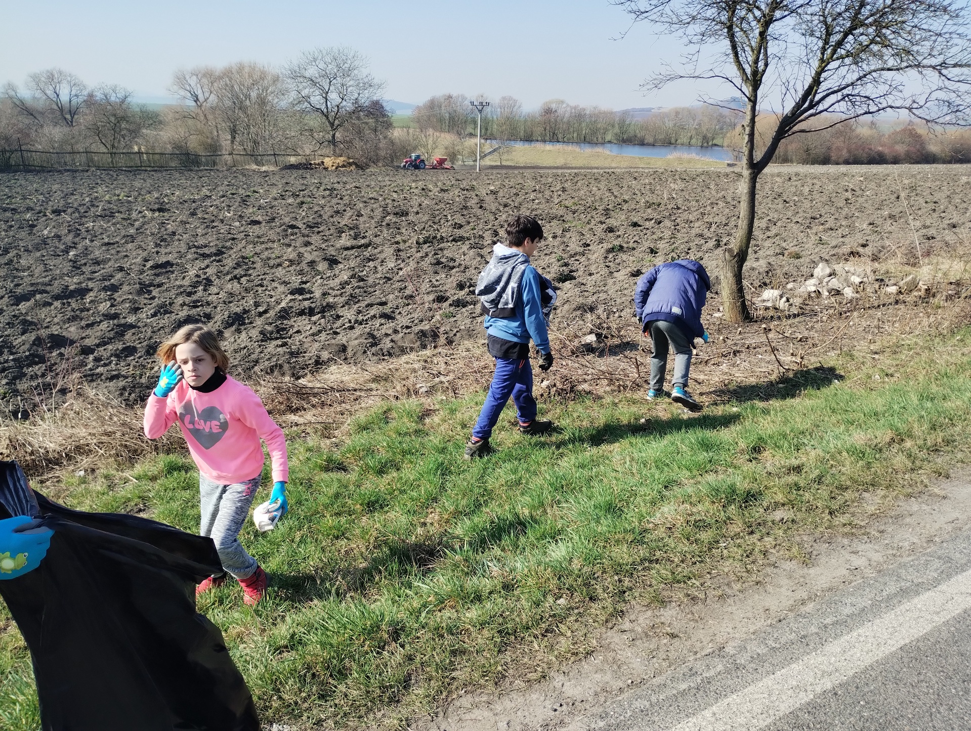 Děti dostaly nové pracovní rukavice, vyfasovali jsme pytle a vyrazili jsme směrem na Podsedice. Ve dvou skupinách jsme sbírali odpadky z příkopů