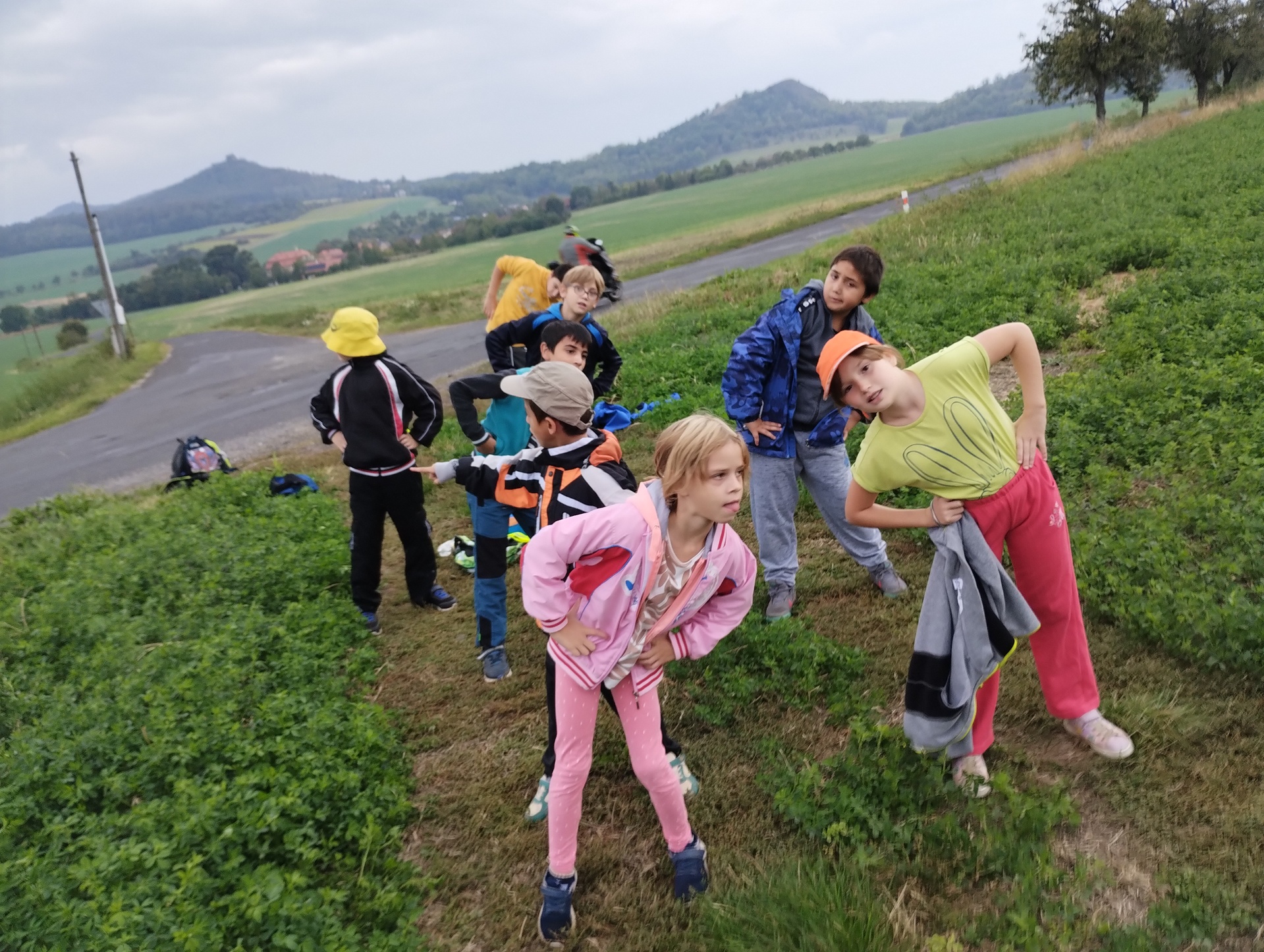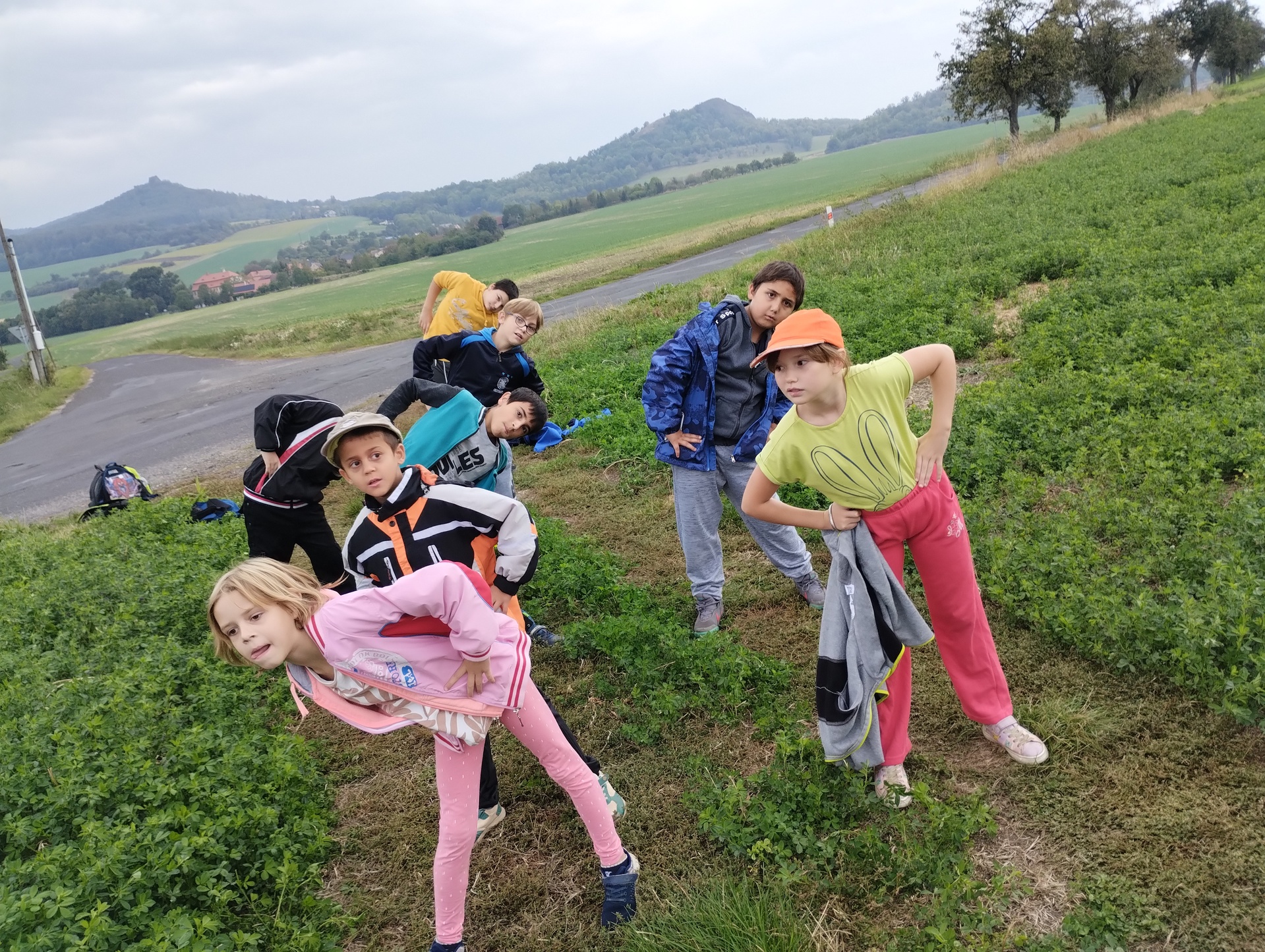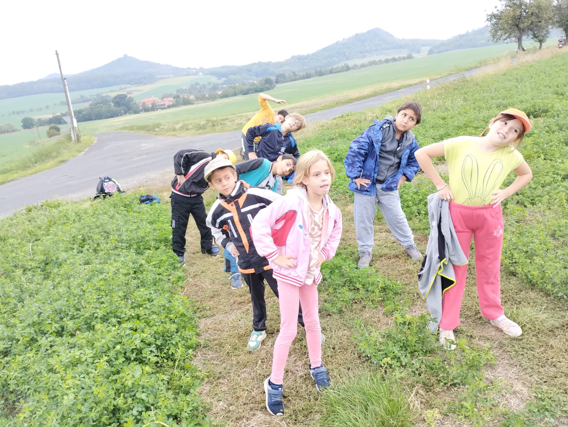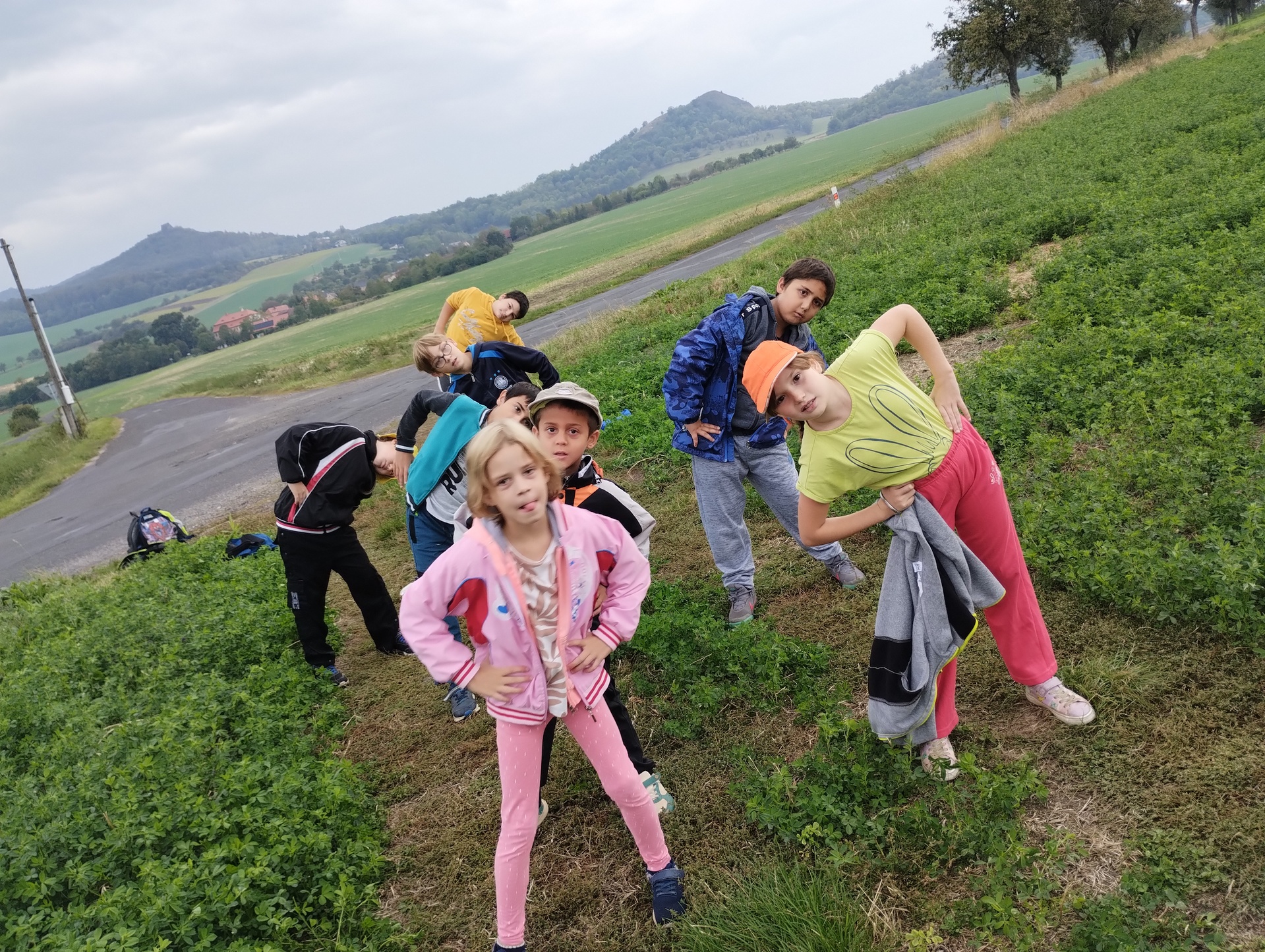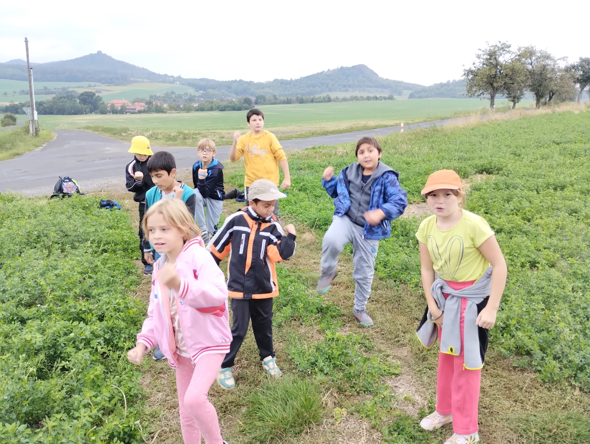 V září jsme uspořádali celoškolní akci- Cvičení v přírodě. Žáci prvního stupně vyrazili na Hrádek. Děti cestou plnily různé sportovní úkoly. Na poli si zacvičily, skákaly přes překážky, házely na cíl. V průběhu cesty také poznávaly přírodniny, které viděly. Některé si nasbíraly a donesly do školy, kde následovala „poznávačka“. Velká škoda byla, že tentokrát počasí nepřálo a cestou zpátky začalo pršet.