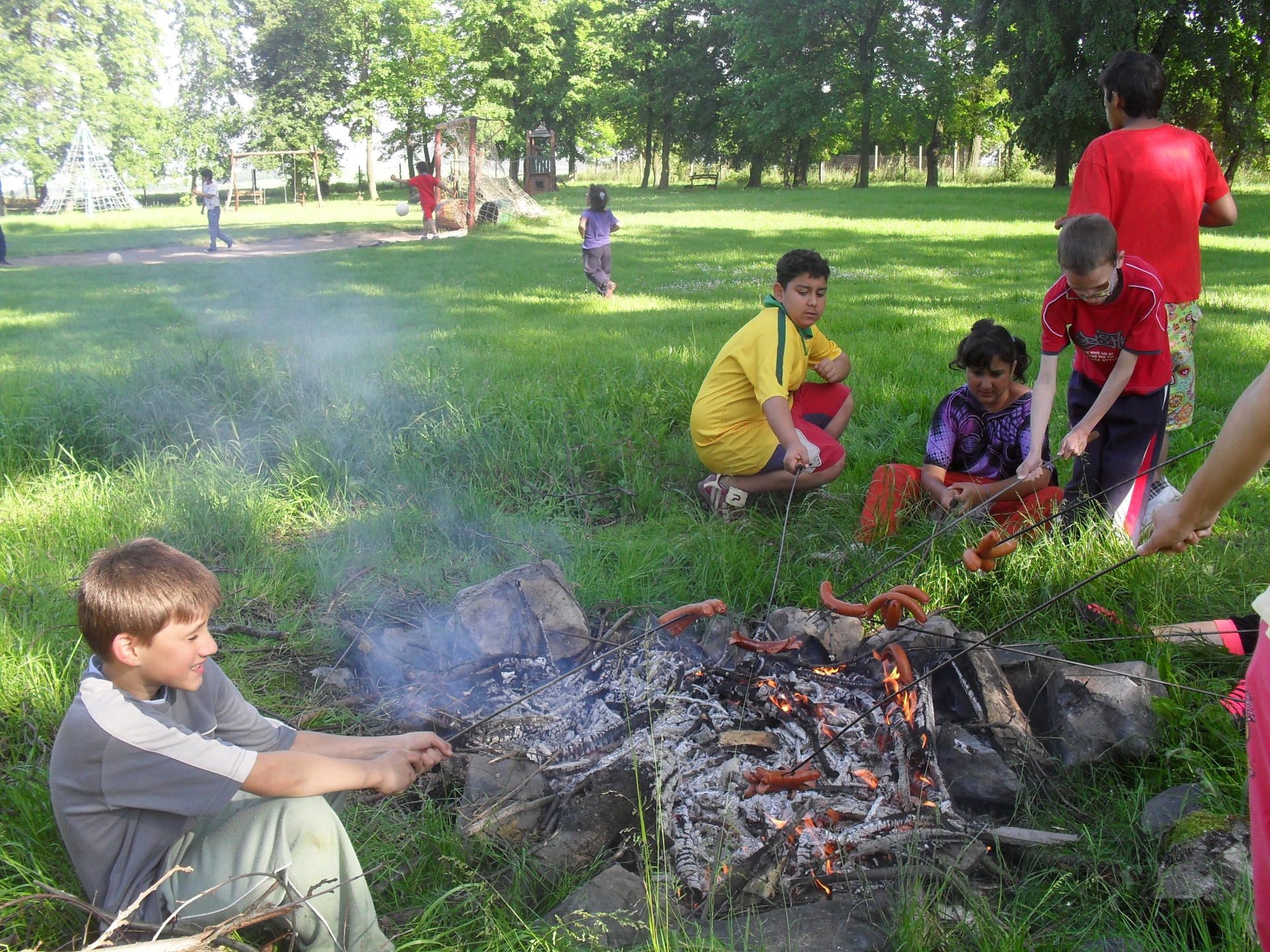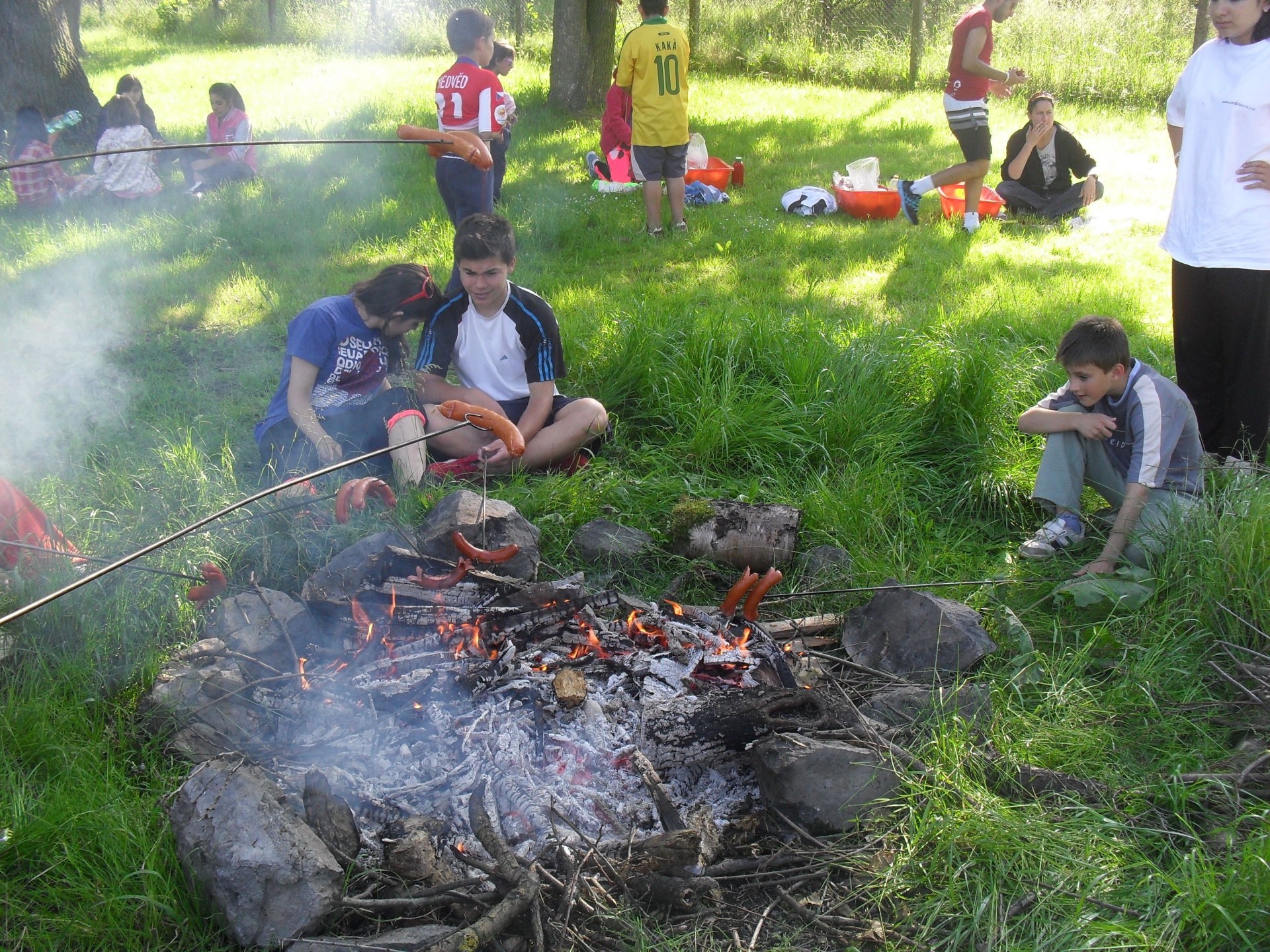 Krásné slunečné odpoledne zakončily opékáním buřtů.