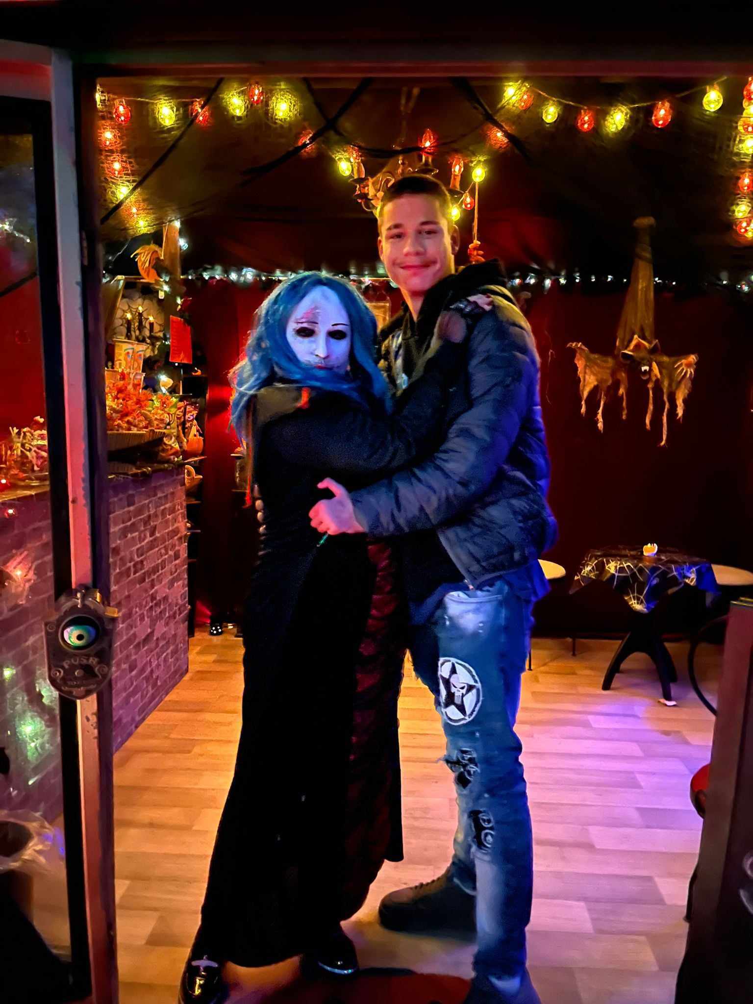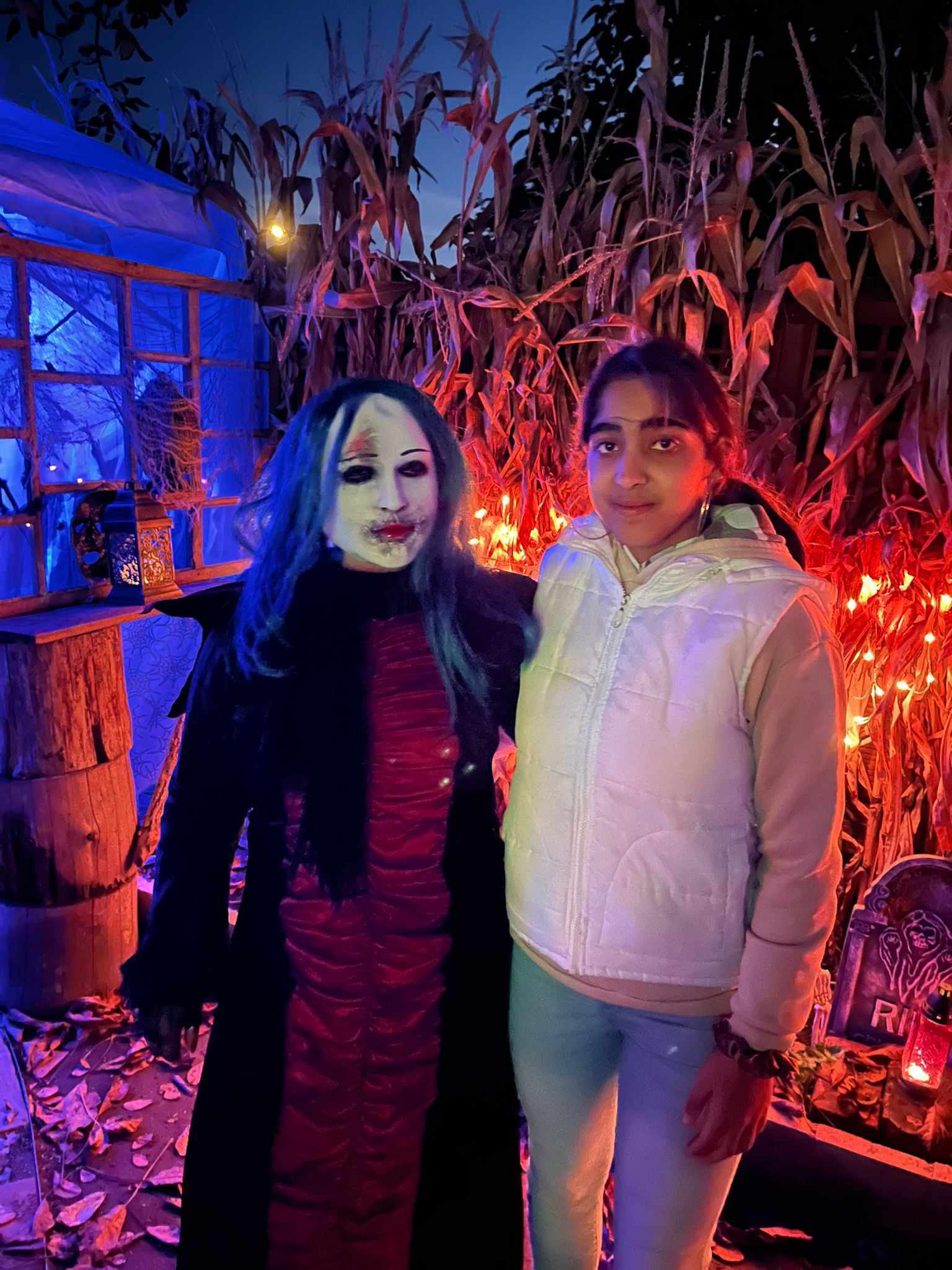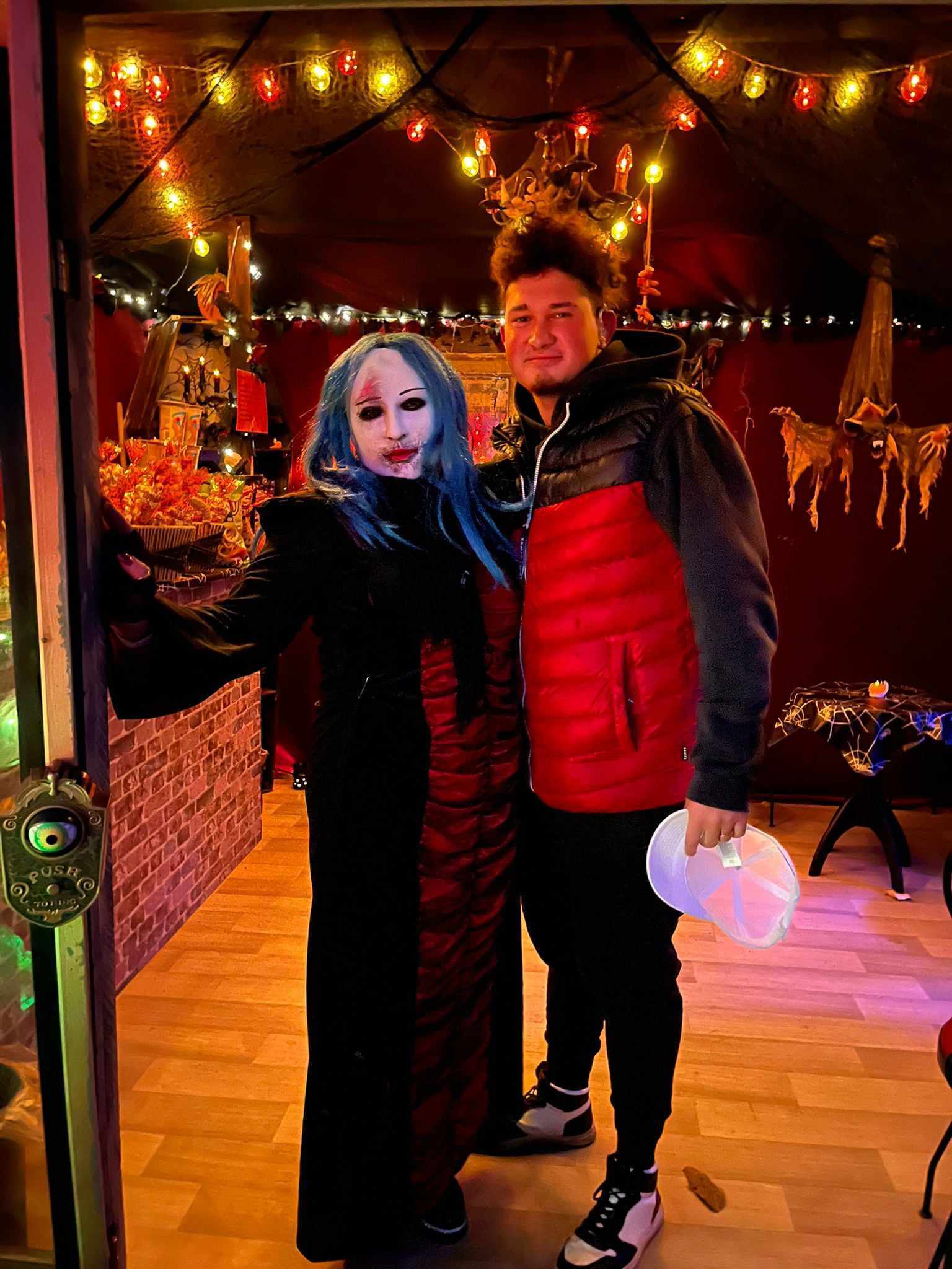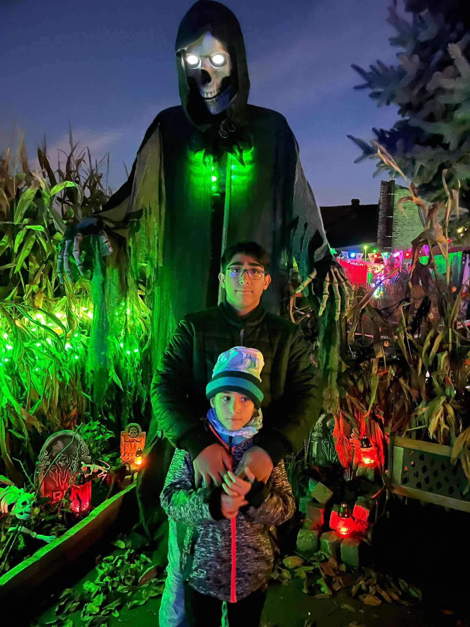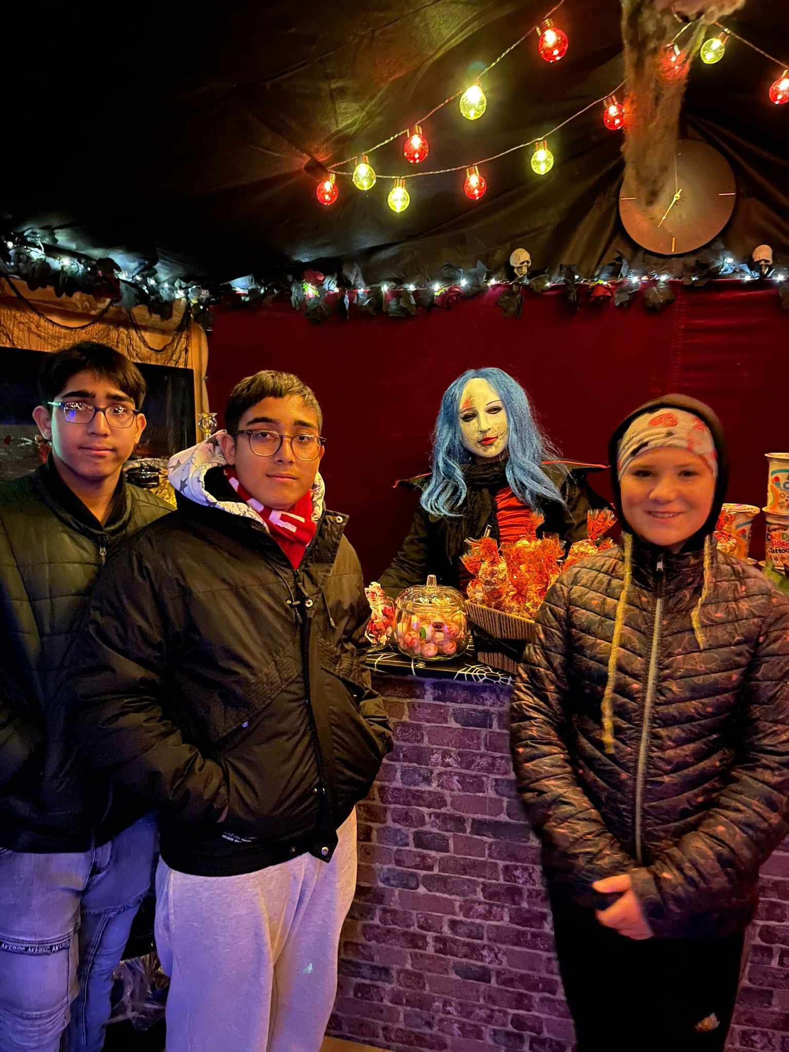 Večer v 18.30 jsme si udělali menší výlet, jeli jsme autobusem do Třebenic, prošli Mlýnskou uličkou do strašidelné zahrady. V zahradě se nacházely různá světýlka, vydlabané dýně, pavouci na pavučinách a obrovské stršidelné příšery, které se po tlesknutí rozhýbaly. Viděli jsme i živá strašidla, která se dětí dotýkala. Děti se s nimi i fotily. Malé děti se bály a trochu brečely, ale po chvíli se bát přestaly. Byl to velký zážitek i pro starší dívky a chlapce. Všem se to moc líbilo, ještě cestou domů si vyprávěli , co se jim nejvíce líbilo.