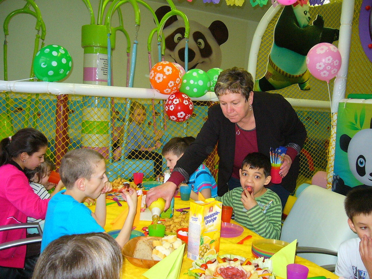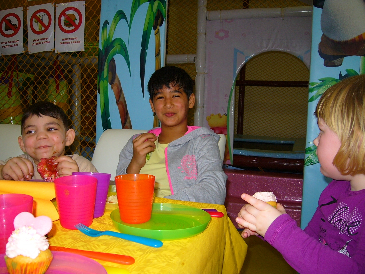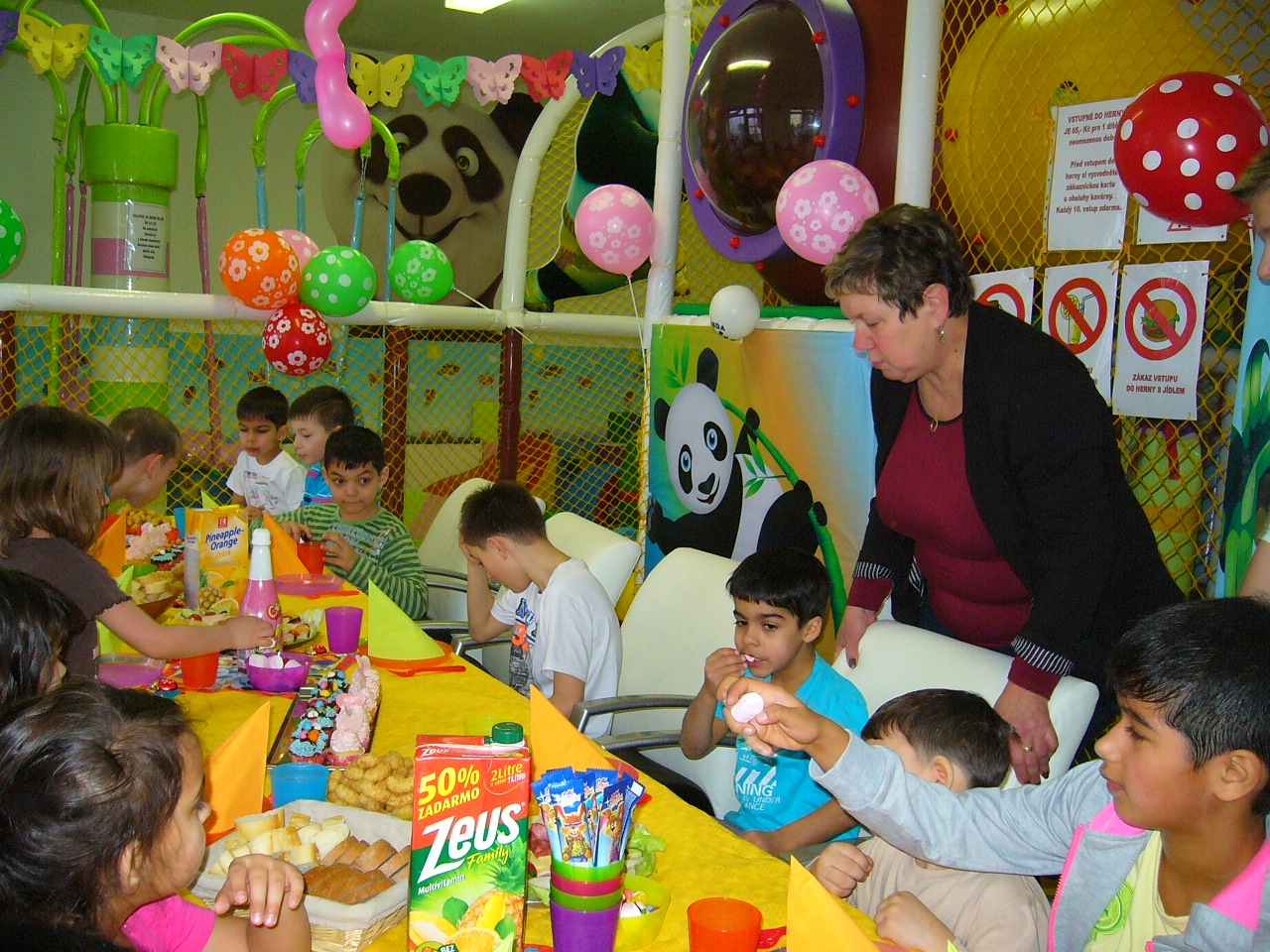 Majitelé si pro naše děti připravili krásný program, vystrojili jim sladkou hostinu, nechali děti povozit na kolotoči, dále si pak děti užívali v kuličkách a na skluzavce.