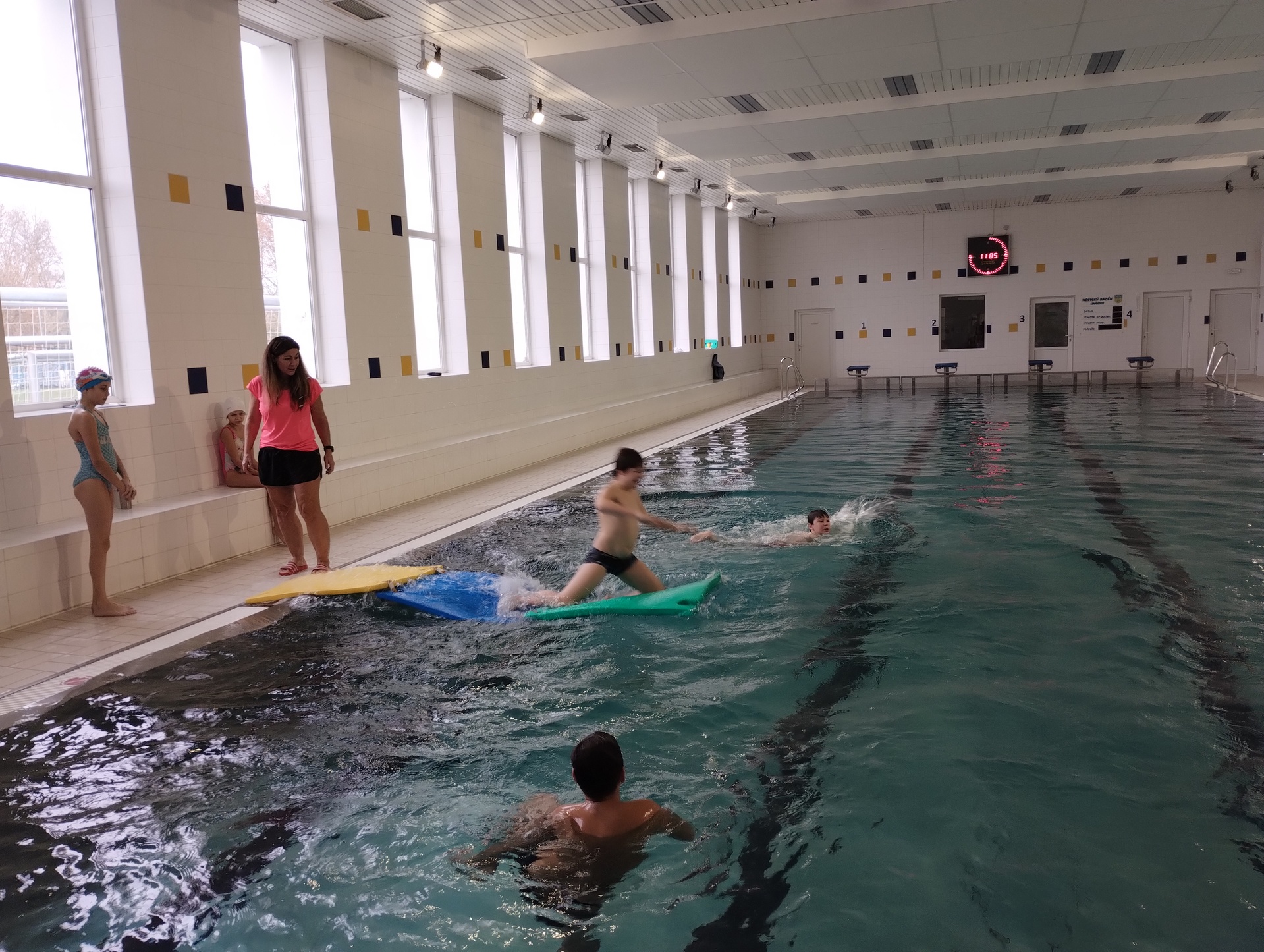 Od 14. listopadu do 23. ledna žáci prvního stupně absolvovali plavecký výcvik v krytém bazénu v Lovosicích. Tento rok byl výjimečný tím, že jsme na výcvik dojížděli vlakem a autobusem, což bylo pro žáky zpestřením i procvičováním společenského chování. Zejména starší žáci překvapili svými výkony a překonávání strachu z vody. Tobias se naučil plavat sám a Péťa s pomůckami ve velkém bazénu. Šimon a Dominik se stali nejrychlejšími plavci své třídy. Pochvala patří všem plavcům.