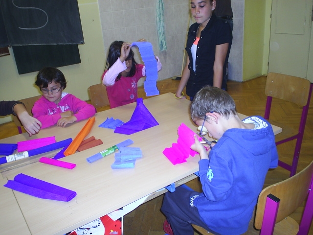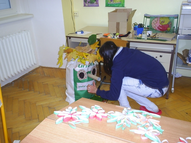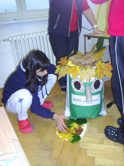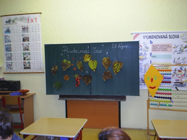 Žáci si zopakovali a upevnili znaky a rysy podzimu jako ročního období, vysvětlili si pojem "babí léto", povídali si o přezimování ptactva a živočichů, péči o ně, ptactvu odlétajícím do jižních krajin, podzimních pracích na zahradách, v sadech, o sklizni a skladování ovoce a zeleniny. Vytvářeli si z papírového kartónu podzimního skřítka, Pracovali s přírodním materiálem (šípky, kaštany, žaludy, bobule, obří dýně, okrasné dýně, listí a jiné přírodniny) se zaměřením na prostorovou tvorbu. ¨Dále si vyráběli vlastního draka podle návodu a nákresu. Žáci mohli pracovat samostatně i ve skupinkách a jejich výtvory jsme zdobily chodby naší školy až do období Vánoc.