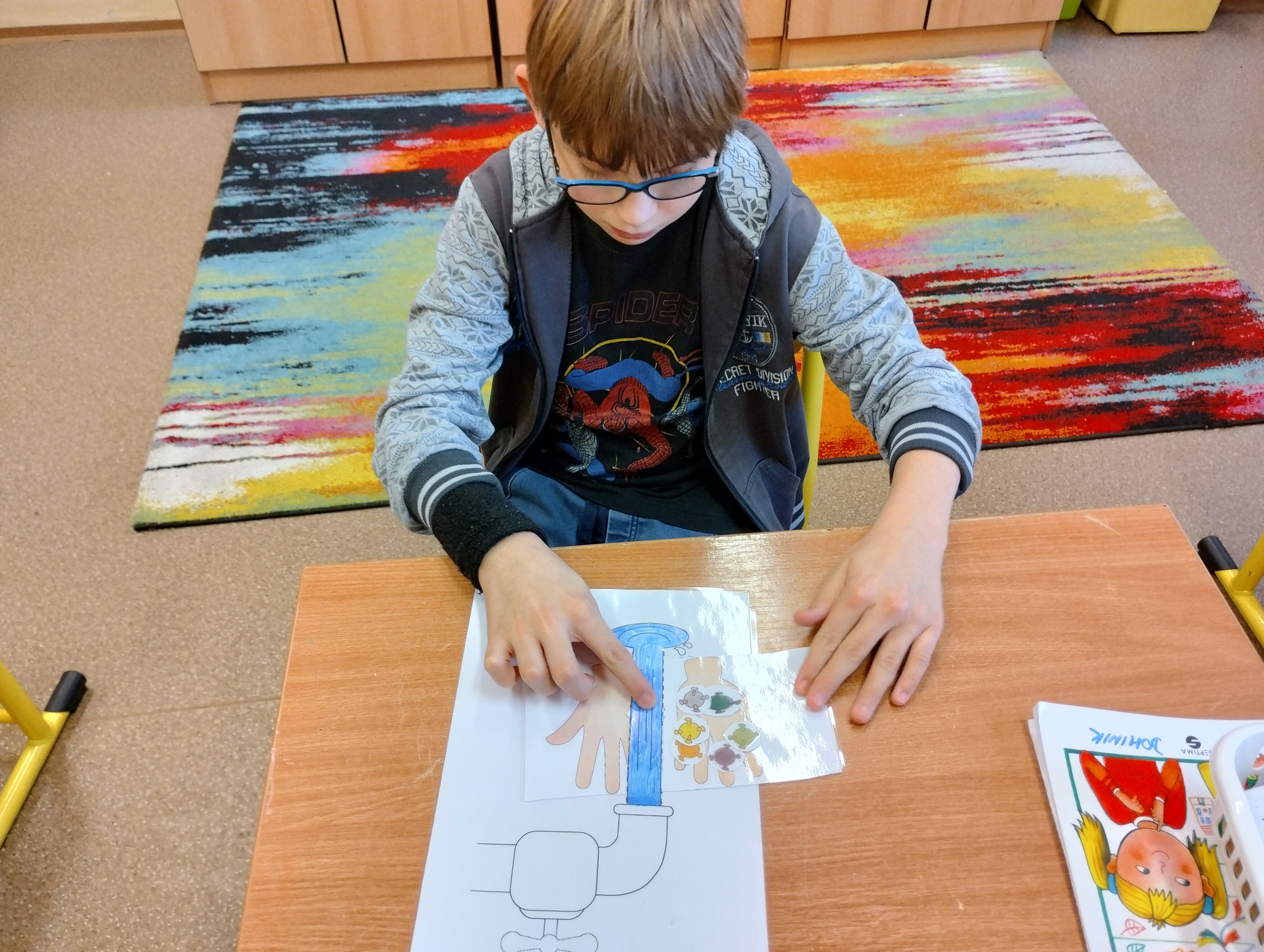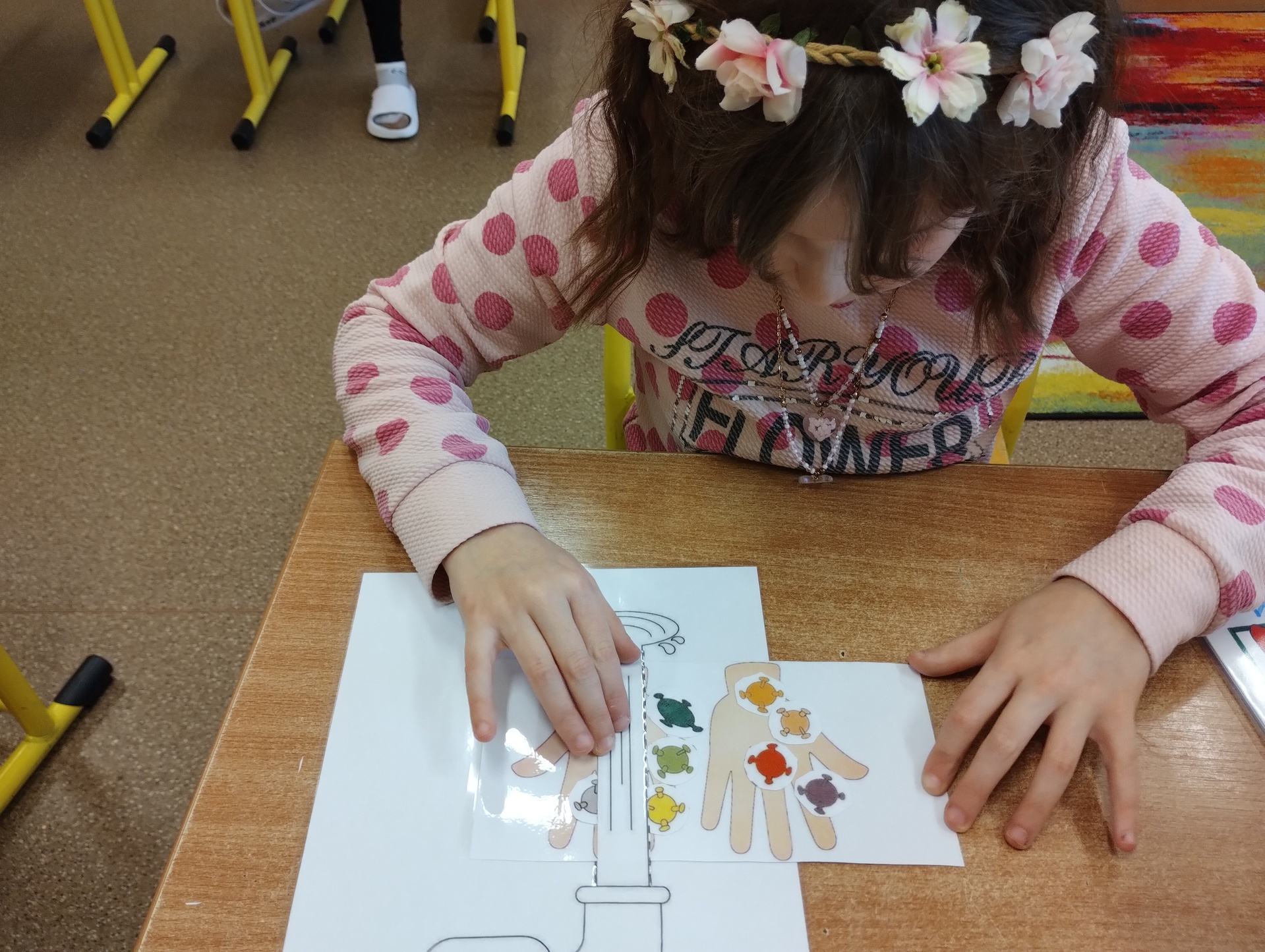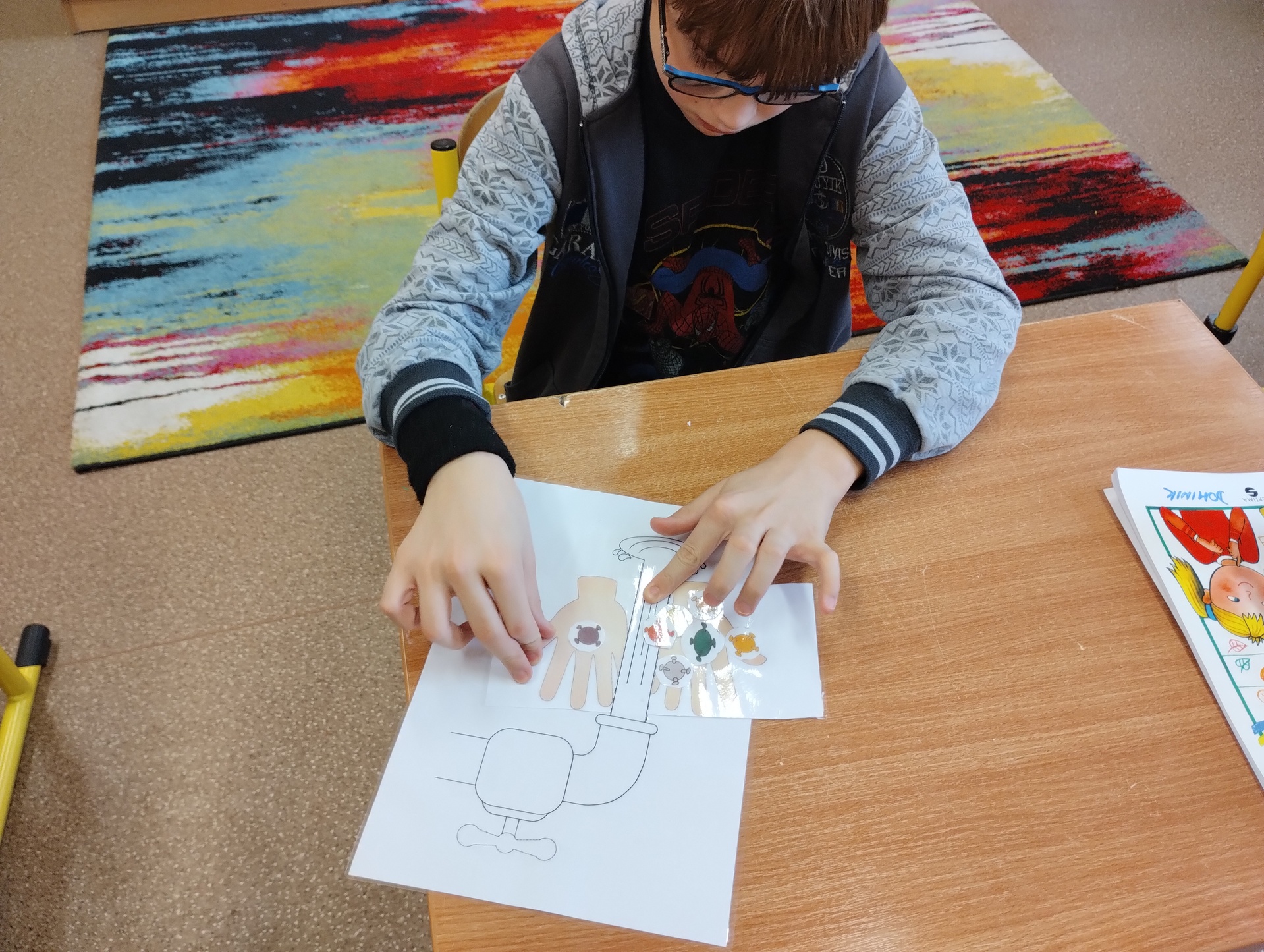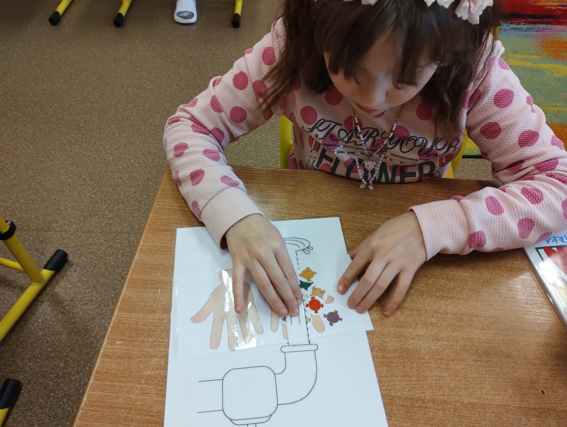 Celý týden jsme si se žáky 4. a 5. třídy vyprávěli o důležitosti hygieny rukou, osobní hygieny a prevenci nemocí. Každý den jsme si zahráli námětovou hru, při které jsme se snažili zachovat v situacích správně. Některé dny jsme si pustili video o zdravém životním stylu a hygieně. V neposlední řadě jsme si vyrobili bacily a kohoutek vody nebo jsme pomalovali papírový kapesník. V přírodovědě jsme vyplňovali pracovní listy, které žáky moc bavily. Všichni se do celého projektu s radostí zapojovali a některým věcem se přiučili.