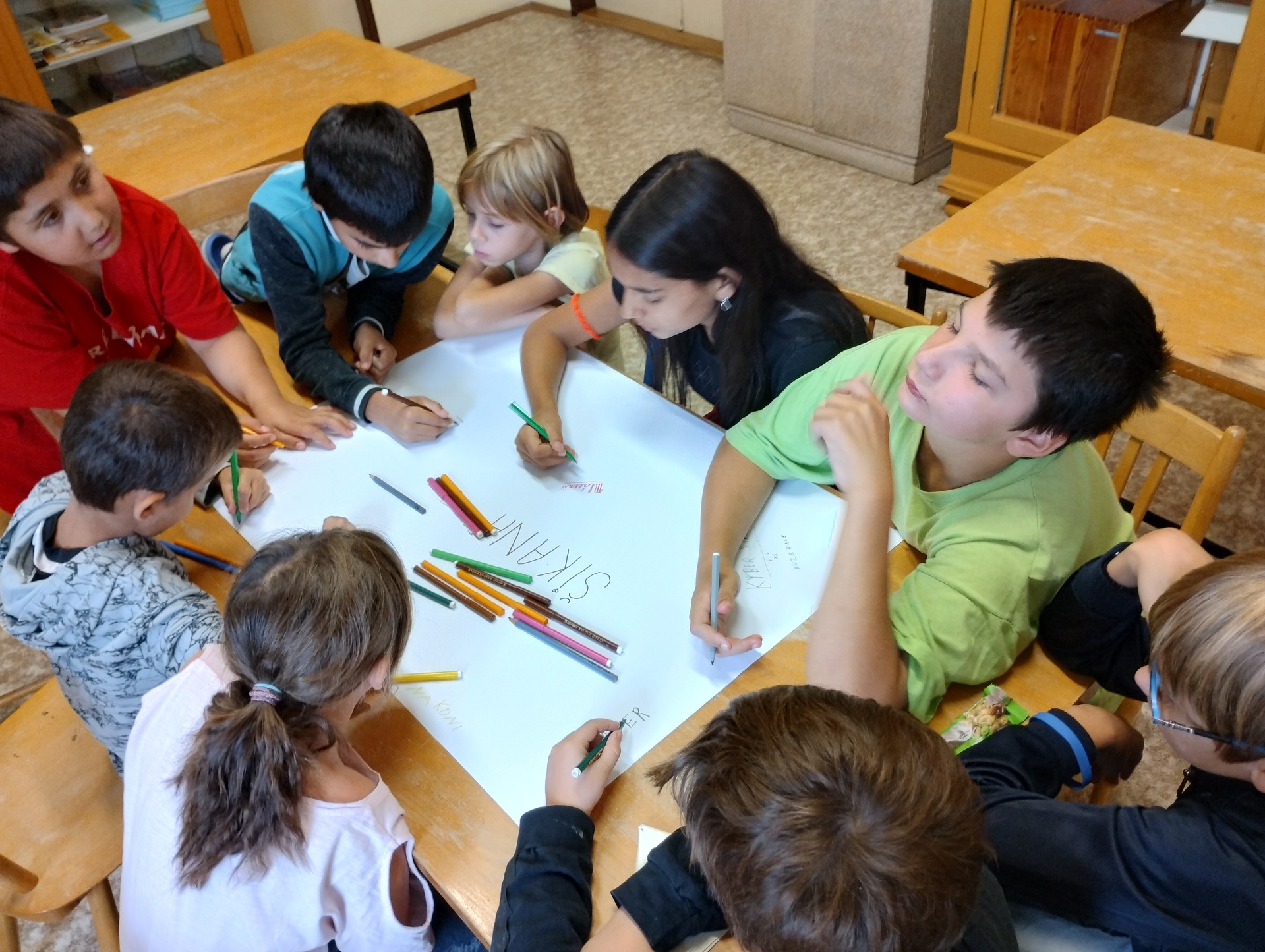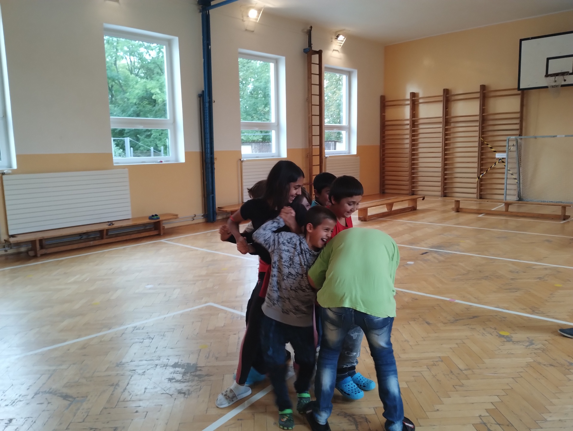 Preventivní program na téma Šikana. První stupeň si nejdříve v tělocvičně zkoušel situace, na které jim následně pan školitel pomáhal hledat řešení. Formou her si žáci trénovali práci a sílu skupiny. Učili se reagovat na násilí jak slovní, tak fyzické. Následně jsme si ve třídě společně vše zopakovali a zakreslili no paměťové mapy.