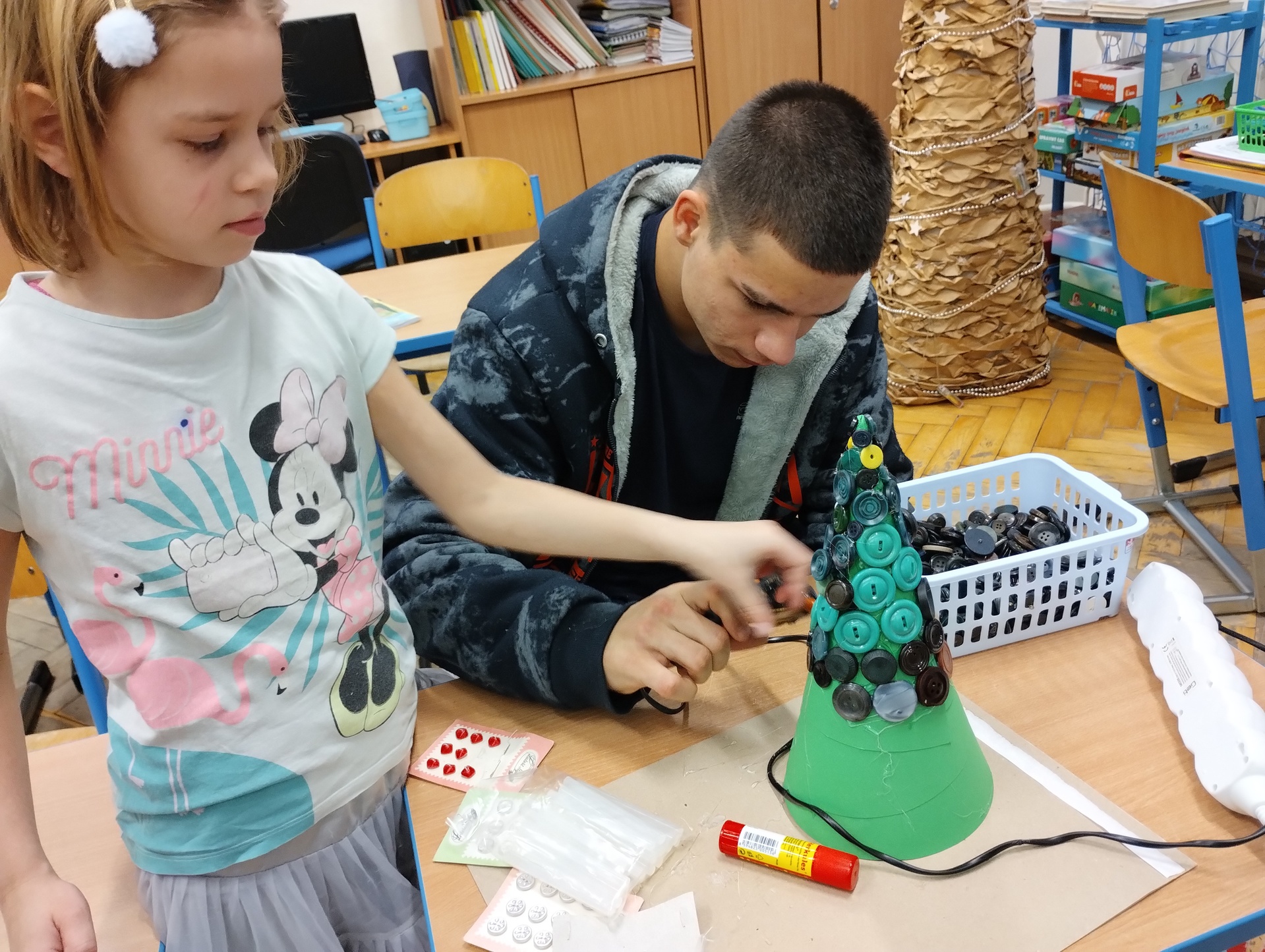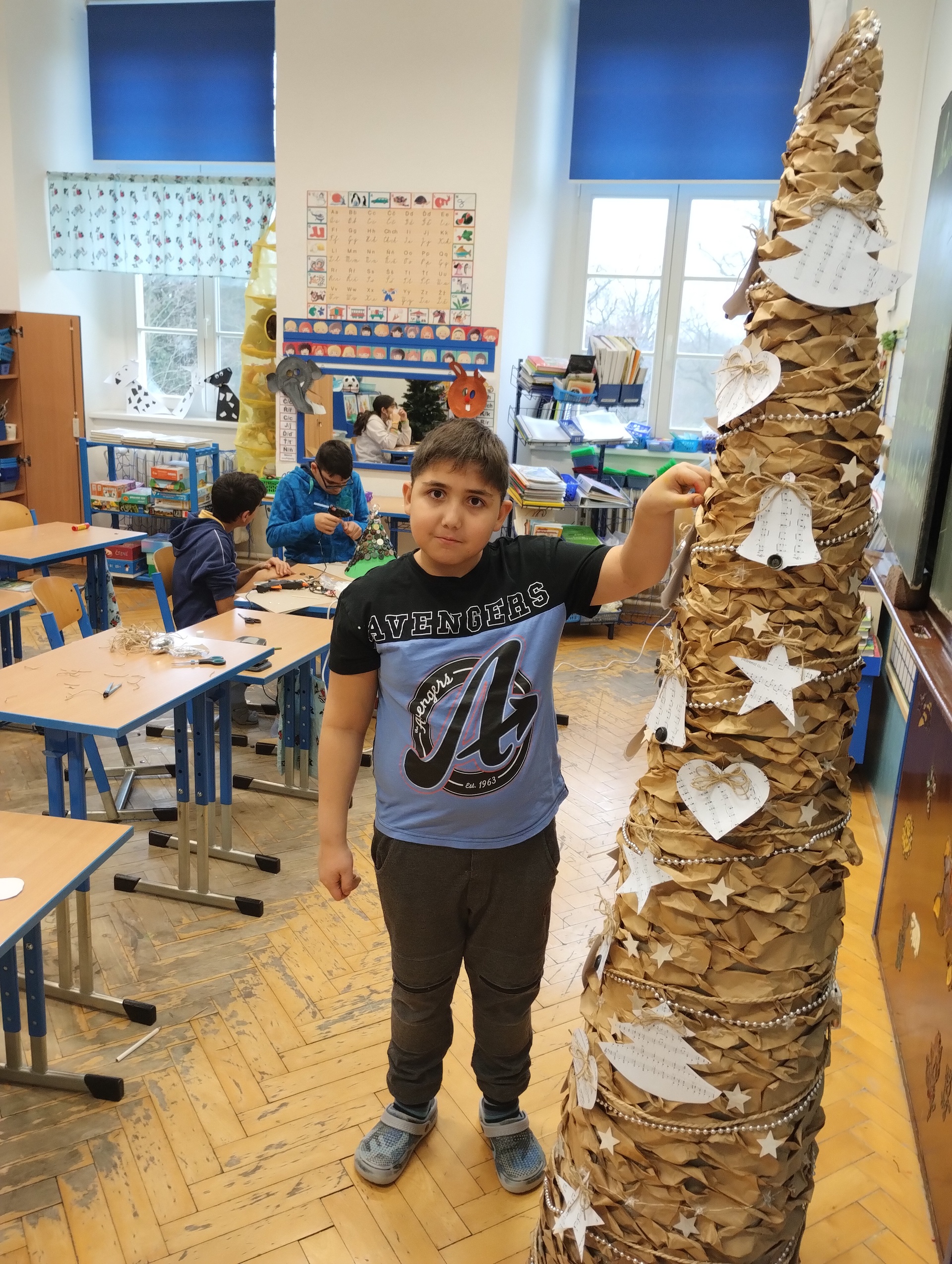 Jako každý rok jsme o školním projektu vyzdobili chodbu a schodiště školy. Žáci ve čtyřech smíšených skupinách vyráběli např. stromeček z knoflíků, vánoční ozdoby, Andělíčka nebo srnky v lese. Všichni krásně spolupracovali a projekt byl vydařený, za snahu byli žáci odměněni slakostí.