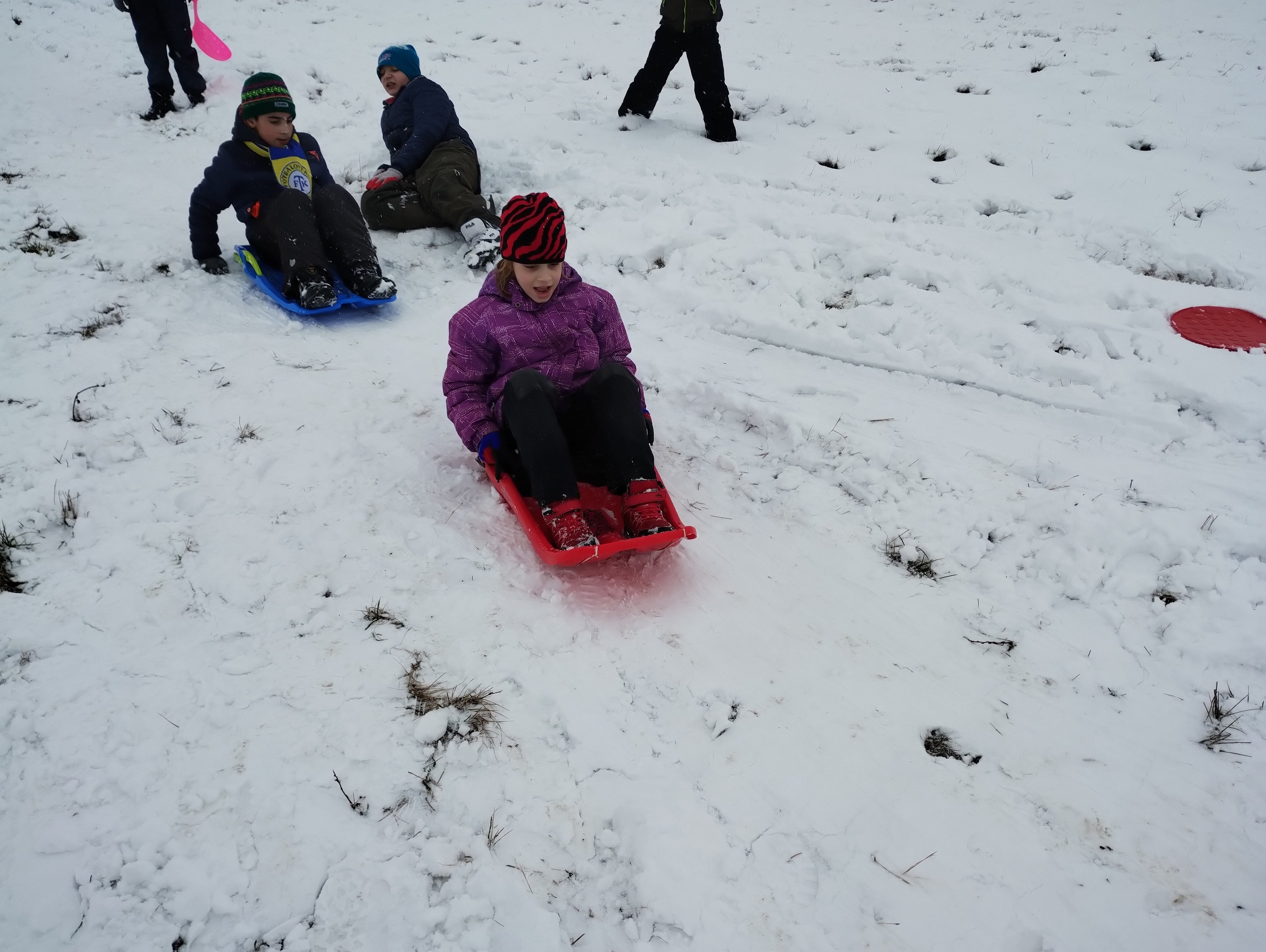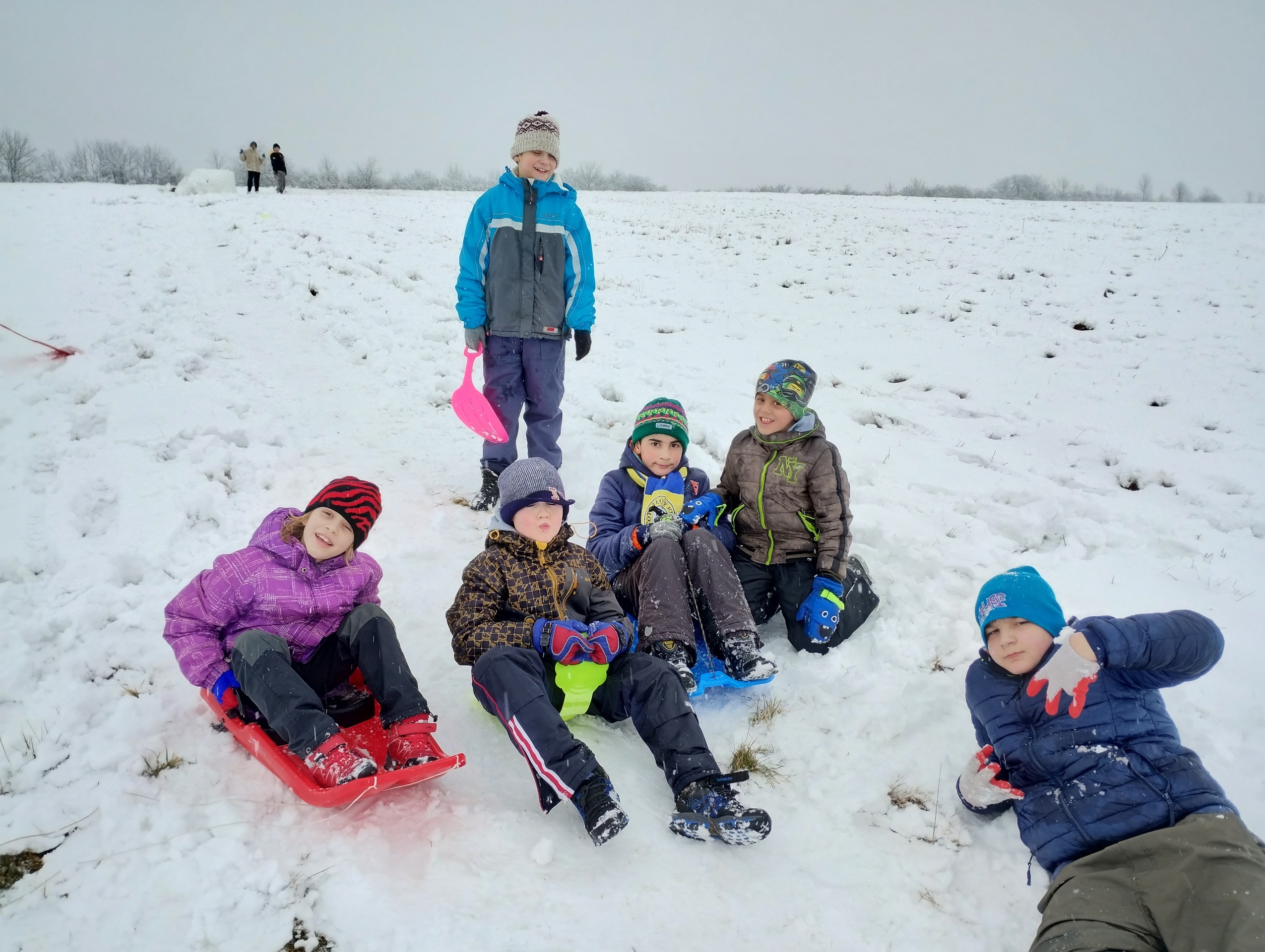 Konečně nám napadl sníh!!! Žáci prvního stupně se vydali vybaveni ježdíky a boby na kopec do nedalekého „Ráškovce“. Nejprve jsme museli upravit svah, protože sněhu bylo hodně. Pak následovaly rozjezdy a hlavní závod „Kdo dojede nejdál“. Po této náročné disciplíně si děti postavily sněhuláky, někteří byli malí, jiní obří. Všichni jsme si užili sněhu a dostatečně jsme se vyřádili. Snad nám sníh vydrží i přes jarní prázdniny.